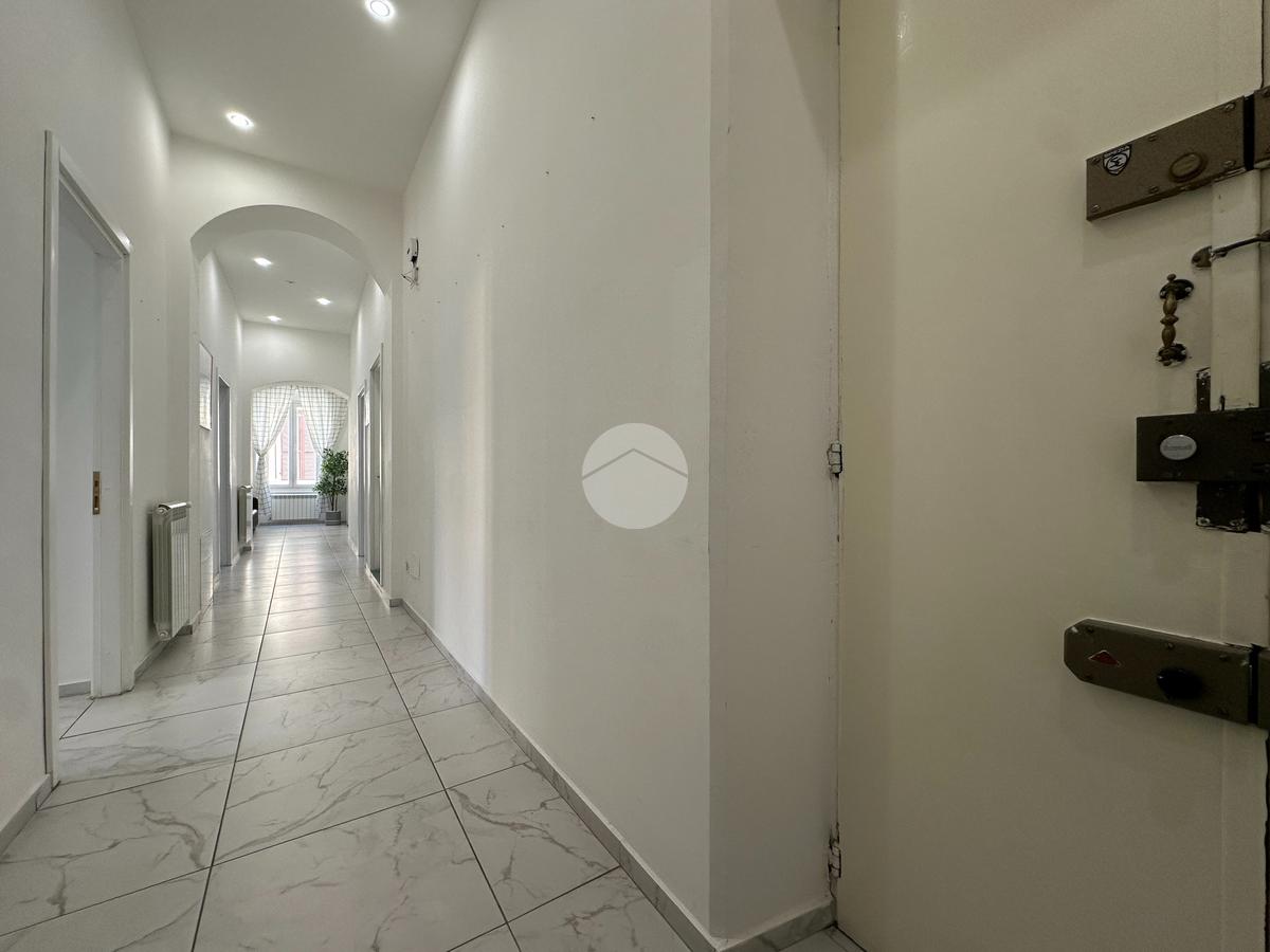 Nel cuore della città, a pochi passi dalla stazione ferroviaria e dal centro pedonale, proponiamo in vendita un ampio appartamento di sei vani situato al secondo piano di un palazzo d’epoca.