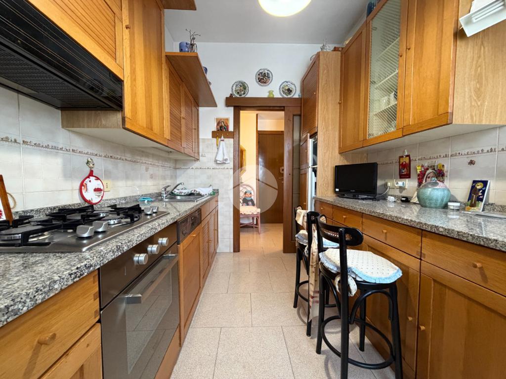 L’ingresso si apre direttamente sulla zona giorno, dove la cucina si collega al soggiorno tramite due accessi, creando un ambiente accogliente e ben distribuito, con accesso al balcone. L’affaccio è particolarmente tranquillo e molto soleggiato, caratteristica che rende gli ambienti piacevoli e luminosi durante tutta la giornata.